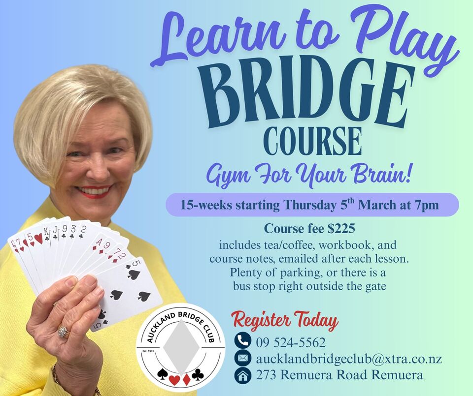 © Copyright The Auckland Bridge Club Inc - Site Map Phone: 09 524-5562 Auckland New Zealand |